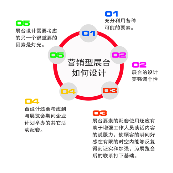 營銷型展臺(tái)是指具備營銷推廣功能的展臺(tái),在設(shè)計(jì)時(shí)從參展企業(yè)參展目的出發(fā),不僅考慮外觀造型、產(chǎn)品展示、企業(yè)實(shí)力、功能布局等等,而且將視聽觸覺相結(jié)合,務(wù)使每一個(gè)環(huán)節(jié),每一步驟都考慮到營銷功能的需求,使展臺(tái)具備營銷功能和有利品牌推廣的特征。