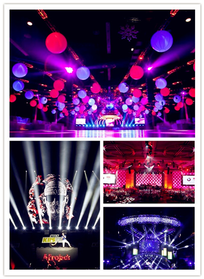 用多種燈光色彩相互配合,營(yíng)造熱烈的氣氛,給人以興奮感,帶動(dòng)人們的熱情,如下圖: