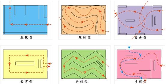人作為展會活動的主體在展臺空間中處于參觀運動的狀態(tài),是在運動中體驗并獲得最終空間感受的。對展臺空間的組織在一定程度上依據(jù)參觀者在空間中的行動路線,同時,也要根據(jù)展品內(nèi)容及其空間分布安排動線走向,對動線劃定要明確順序性、便捷性和靈活性。動線在展覽中的作用,更加明確了人和空間的關(guān)系,體現(xiàn)了以人為主體的空間設(shè)計觀念。