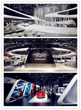 汽車展臺內(nèi)空間設(shè)計(jì):汽車展廳內(nèi)部空間環(huán)境從空間的功能性質(zhì)區(qū)分為:核心空間、展示空間、交通空間、辦公空間、服務(wù)維修和倉儲(chǔ)空間幾類空間。由于汽車展臺的類型不同,這些空間的具體功能分布又有變化,一般包括汽車展示區(qū)、接待區(qū)、客戶休息區(qū)、洽談區(qū)、零配件銷售區(qū)、VIP室、財(cái)務(wù)室、工作人員辦公室等。