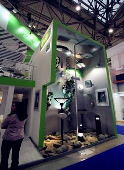 覺(jué)傳達(dá)的一種立體廣告形式,大量品牌和產(chǎn)品信息必須通過(guò)色彩來(lái)訴諸顧客。色彩具有的誘目性,不僅可以吸引顧客,讓觀者有效地認(rèn)識(shí)商品,也能從中感受到物體之美感,引發(fā)心理興趣和購(gòu)買(mǎi)欲望。因此,在LED照明展裝修中,用色彩營(yíng)造情調(diào),氣氛和創(chuàng)造意境是非常有效的。由于人們對(duì)色彩的偏好更多地受到民族習(xí)慣、知覺(jué)經(jīng)驗(yàn)情緒狀態(tài)以及社會(huì)時(shí)尚的影響,因而不同個(gè)體對(duì)色彩的偏好都有很大差距。一般而言色彩個(gè)性化設(shè)計(jì)主要是對(duì)企業(yè)標(biāo)志色及其延伸色彩的充分運(yùn)用,造成與其他展位相區(qū)別的單元性效果。這種統(tǒng)一、和諧視覺(jué)環(huán)境可以讓觀者感受到參展商濃郁的企業(yè)文化,對(duì)于品牌傳播非常有益。